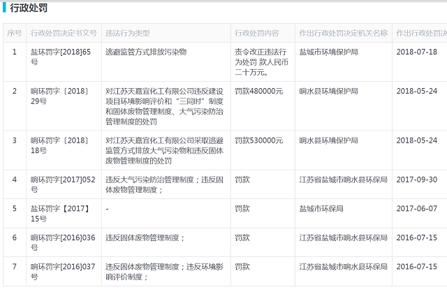 ÉæÊÂÆóÒµÌì¼ÎÒË»¯¹¤½¨ÉèÓÚ2007Ä꣬£¬£¬£¬£¬£¬£¬ÊôÓÚ»¯Ñ§ÖÊÁϺͻ¯Ñ§ÖÆÆ·ÖÆÔìÒµ£¬£¬£¬£¬£¬£¬£¬¶àÄê±£´æ»·±£¡¢Çå¾²Òþ»¼¡£¡£¡£¡£¡£¡£ÆäÖÐ2016Äê7ÔÂ~2018Äê7Ô£¬£¬£¬£¬£¬£¬£¬Á½Äê×óÓÒʱ¼ä£¬£¬£¬£¬£¬£¬£¬±»»·±£²¿·Ö´¦·Ö7´Î£¬£¬£¬£¬£¬£¬£¬´¦·ÖÔÓÉÓÚÎ¥·´´óÆøÎÛȾ¹ÜÀíÖÆ¶È¡¢Î¥·´¹Ì̬·ÏÎï¹ÜÀí¡¢ Î¥·´ÇéÐÎÓ°ÏìÆÀ¼ÛÖÆ¶È¡£¡£¡£¡£¡£¡£